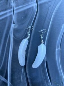 Teemme myös sulkakorvakoruja ja -kaulakoruja, joiden sulat ovat omien lintujemme ja korunosat ovat kirurginterästä.